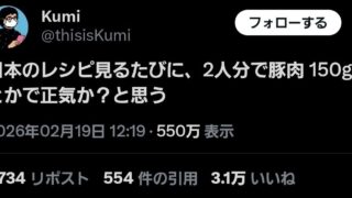 嫌儲 日本国民「日本のレシピ見るたびに、2人分で豚肉150gとかで正気か?と思う」👈3万いいね