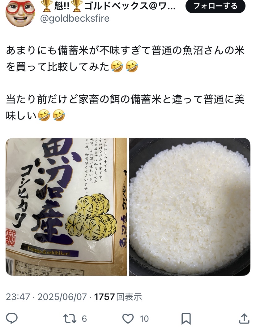 代わりが魚沼(笑)産って時点でお察しだな🥴