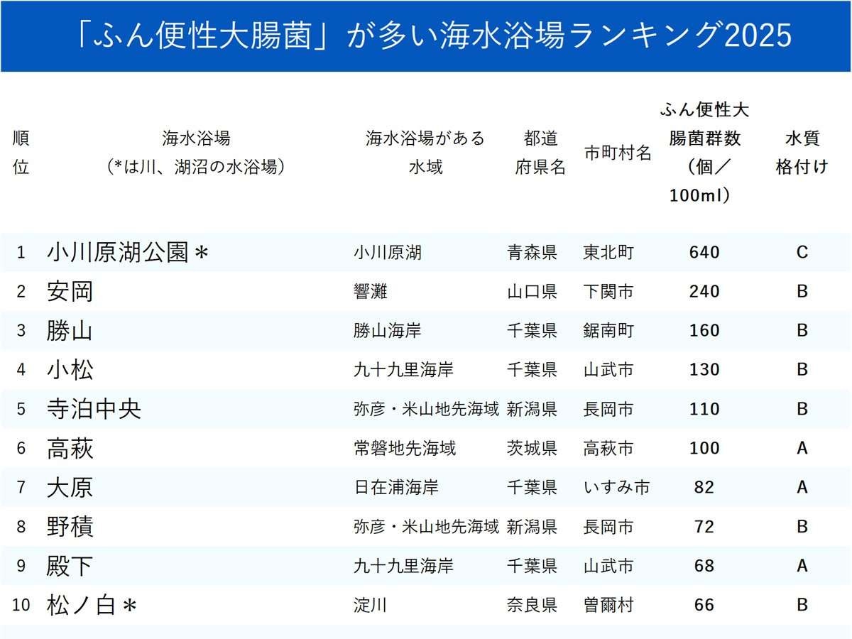 「ふん便性大腸菌」が多い海水浴場ランキング2025【全69カ所・完全版】 | ニッポンなんでもランキング! | ダイヤモンド・オンライン https://share.google/USAYIa8531Sh9L1RH