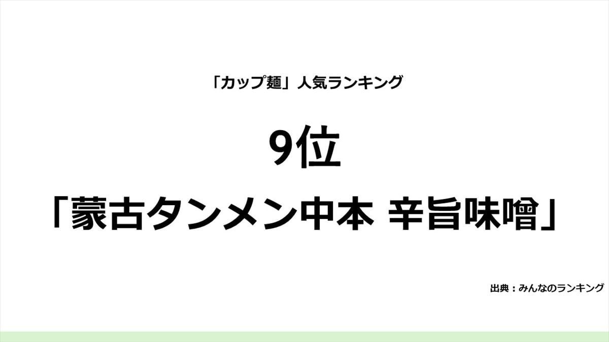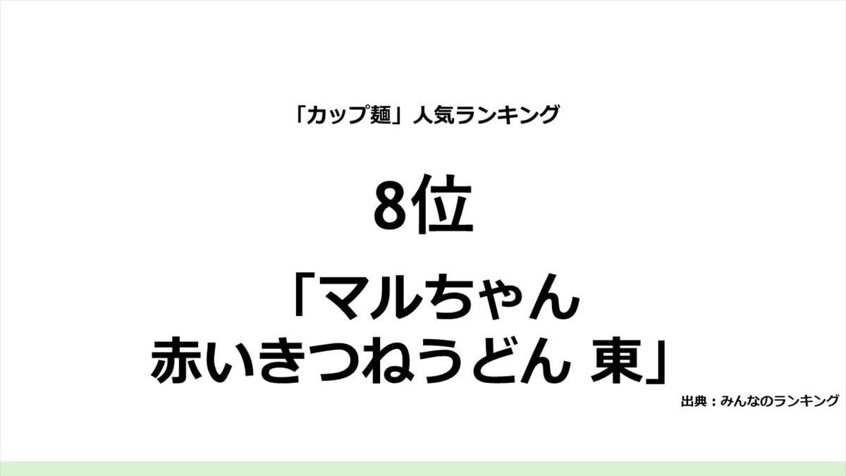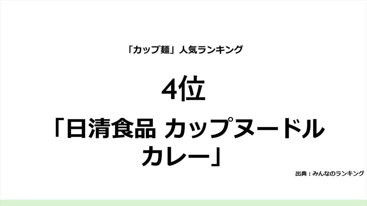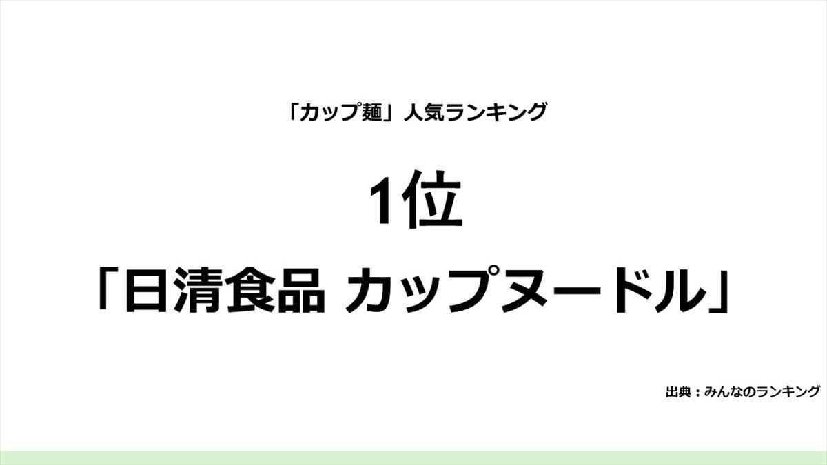 そして、1位は、日清食品「カップヌードル」でした。「シンプルで濃厚過ぎないので、夜食にぴったりです」「安定したおいしさと安心感。子どもの頃から慣れ親しんだ味で、たまに無性に食べたくなってしまう」「やっぱりおいしい! 他のカップ麺にはない、病みつきの味!」などの回答が集まっていました。