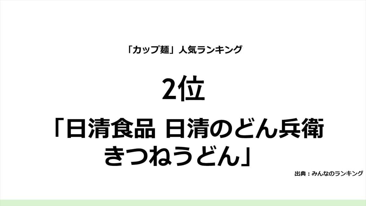 2位には、日清食品「日清のどん兵衛 きつねうどん」がランクイン。「ついついだしまで飲み干してしまう」「昔からこの味が好き」「本当においしい以外に言うことがない。1つ食べたあと2つ目を食べたくなる」などのコメントが見られました。