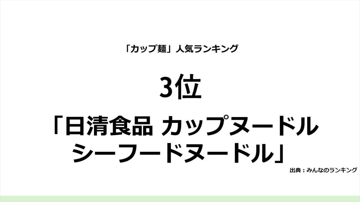 「カップ麺」人気ランキング 3位「カップヌードル シーフードヌードル」…2位&1位は?
