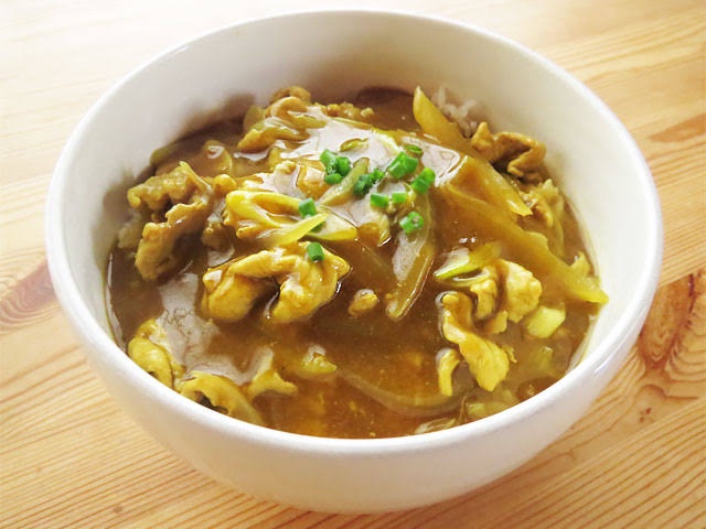 豚バラと玉ねぎをカレー粉で炒めて出汁入れて片栗粉でとろみを付ける