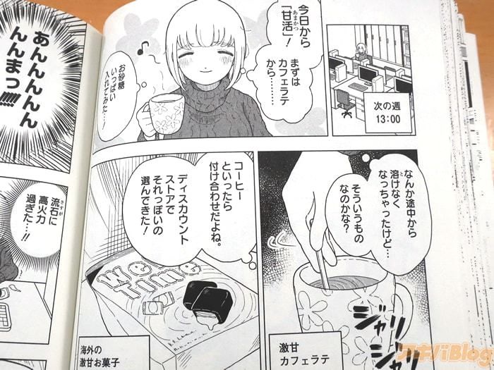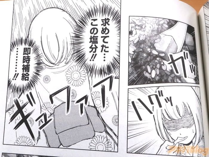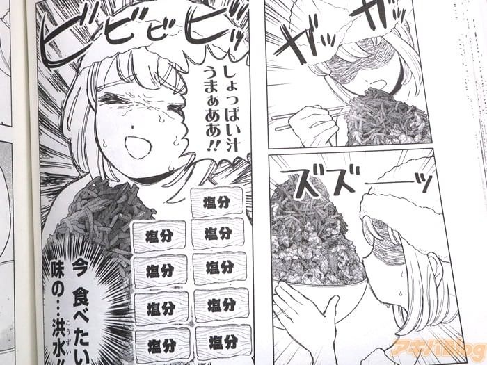 たとえば、残業の夜食にメガ・カップ焼きそばを2つも平らげるなど、彼女の狂乱じみた食欲は「一種のホラーかな?」とも思いましたが、物語が進むにつれ、彼女のほのぼのした魅力がドカ食いの狂気を和らげ、ほっこりした笑いをもたらすコメディへと変わっていきました。