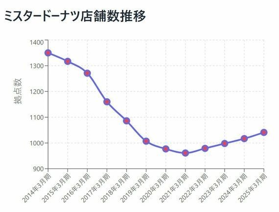「ミスタードーナツ」(ミスド)の閉店がここ数年続いている。ダスキン(大阪府吹田市)が運営するドーナツショップで、1971年に国内1号店が誕生。2003年には1600店を突破し、幼いころからなじみがある人も多いだろう。