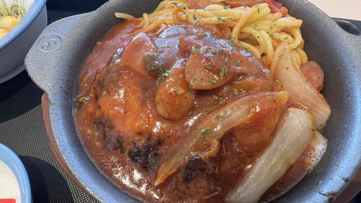 ナポリタンに米…?と思ったらナポリタンハンバーグなのね