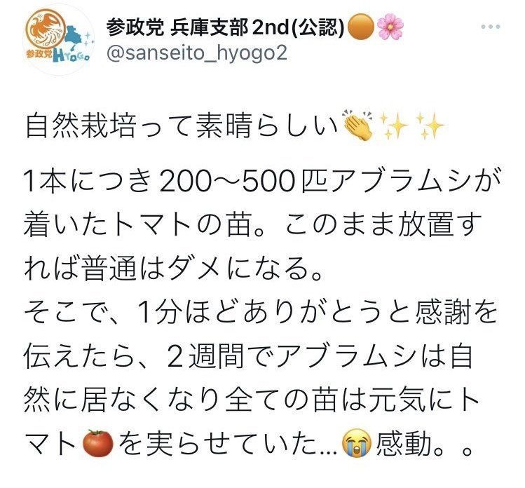 農薬アンチの参政党が政権を取ったら農薬禁止になって農家は「ありがとう」で虫を追い払うことになるのか