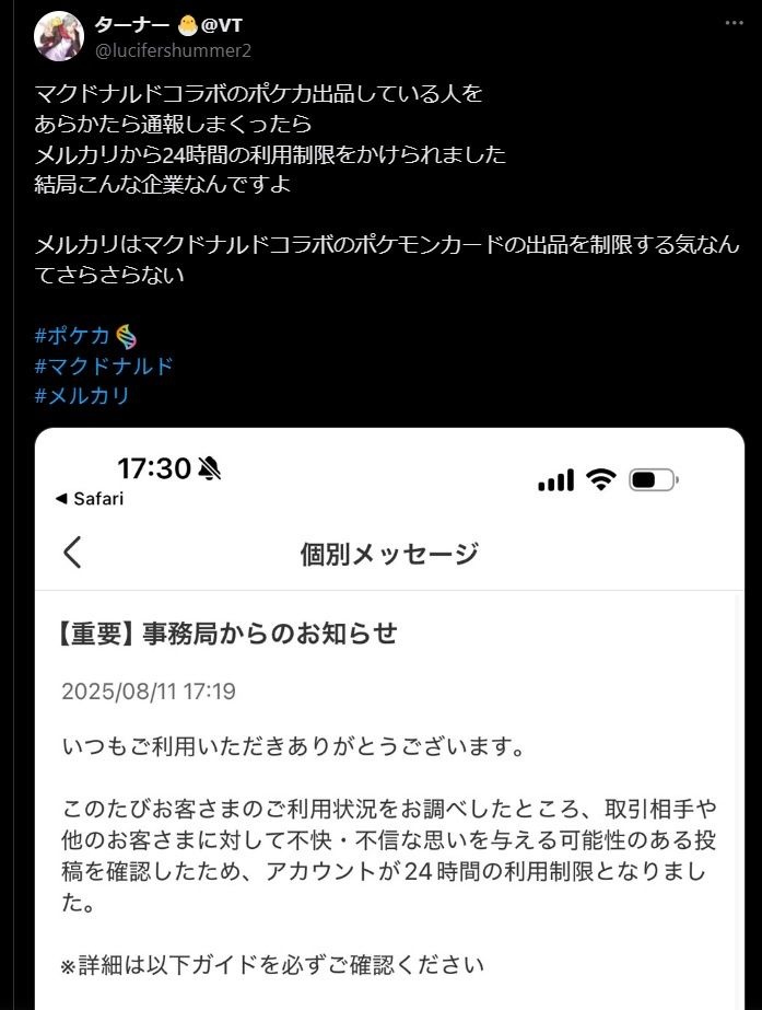 メルカリはマクドナルドコラボのポケモンカードの出品を制限する気なんてさらさらない