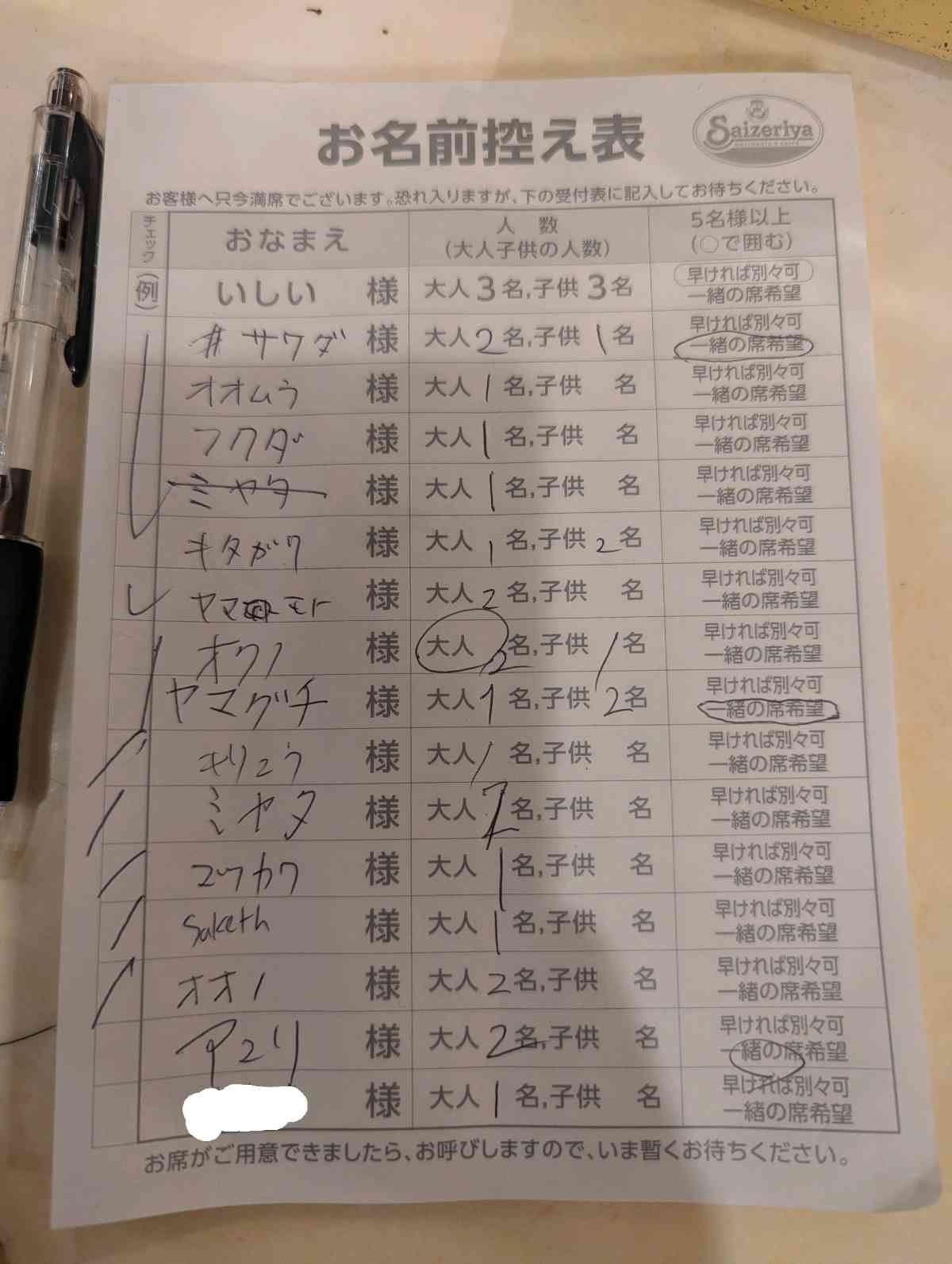 マルつけてる大人2人や大人1人子供二人、別々にするわけ無いだろうに