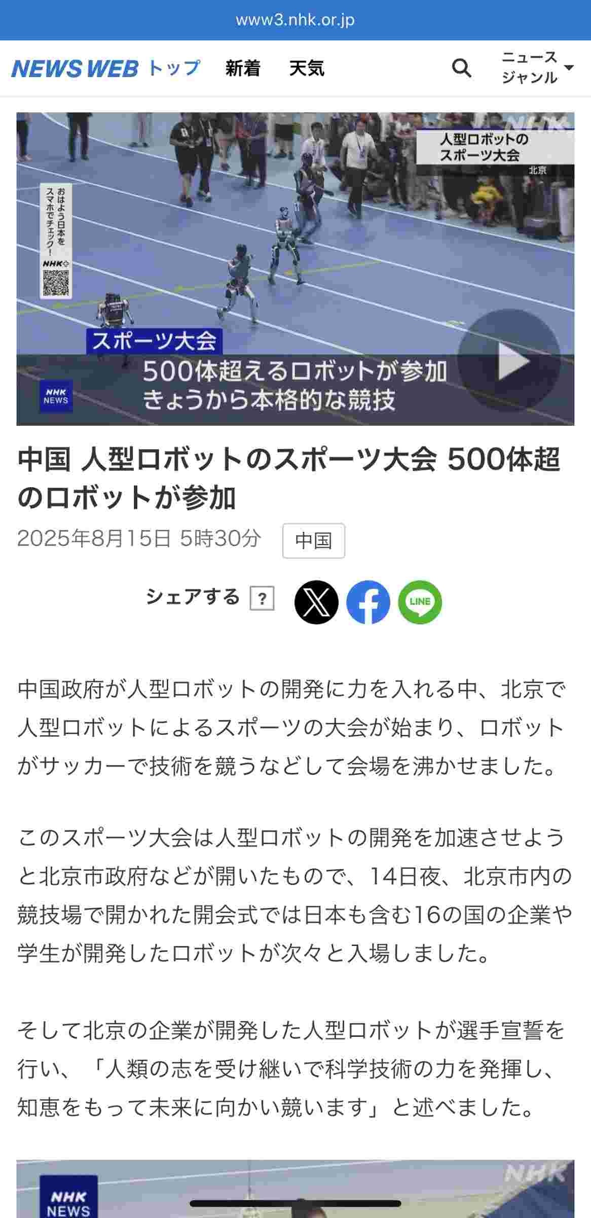 【動画】ロボット先進国の中国で人型ロボットの国際スポーツ大会が開催される。ジャップとの差がどんどん開いてしまう…