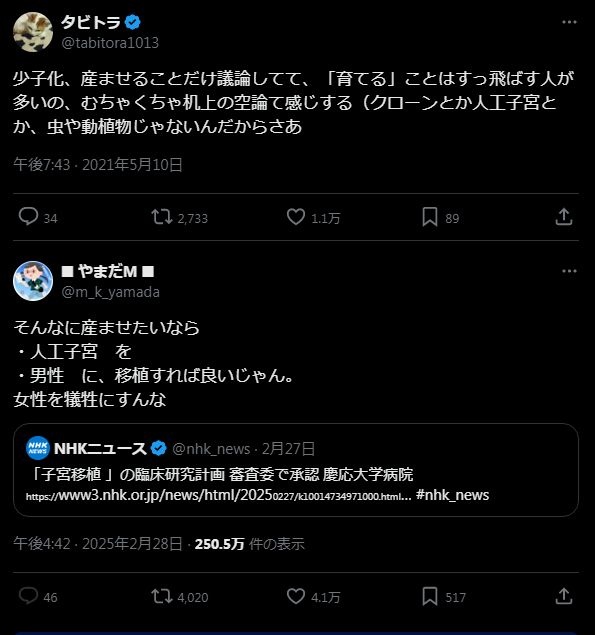 女性を妊娠出産から解放する画期的な技術なのにフェミはなぜギャオるのか