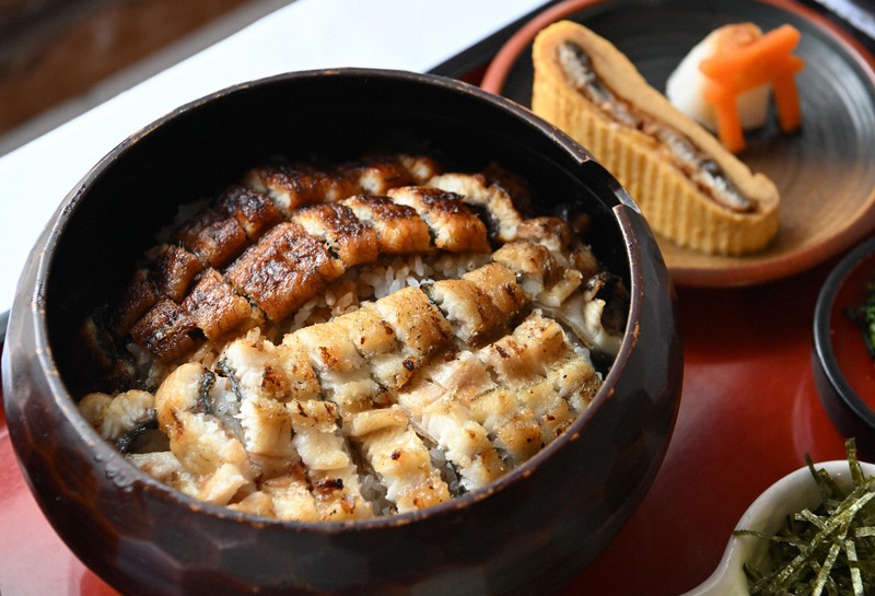 第83期名人戦第4局1日目の昼食に永瀬拓矢九段が注文した「宇佐神宮の色・紅白まぶし名産添え」=大分県宇佐市の宇佐神宮で2025年5月17日午前11時47分、北山夏帆撮影