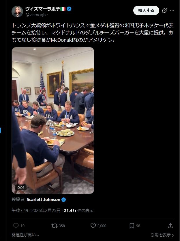 日本で言えば高市がサイゼなんかでオリンピック選手と一緒に奢るみたいな