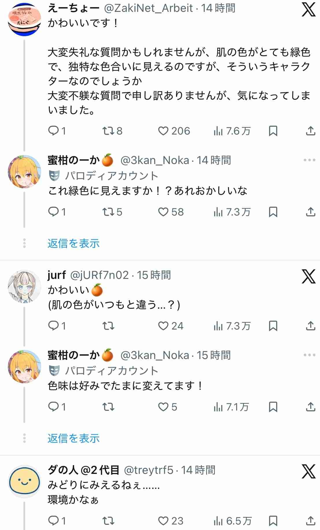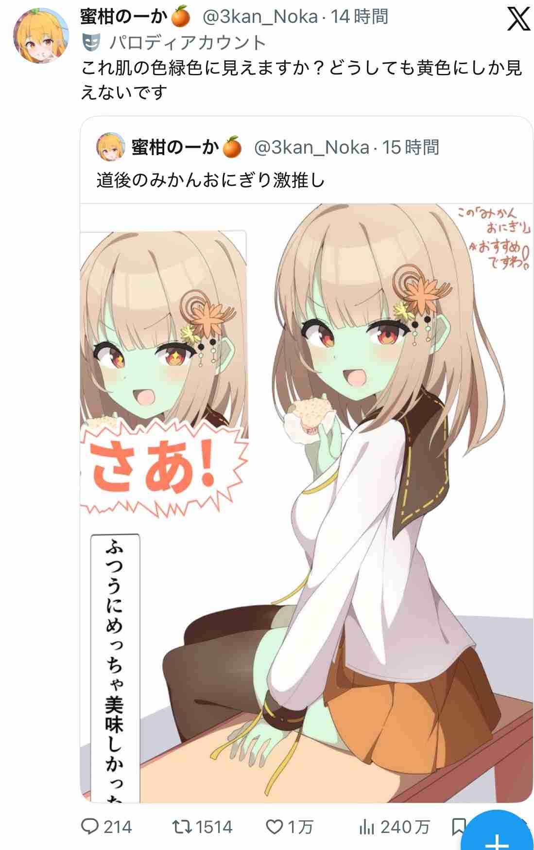 みかんおにぎりが違和感あるから緑肌もそういうネタかと思いそう