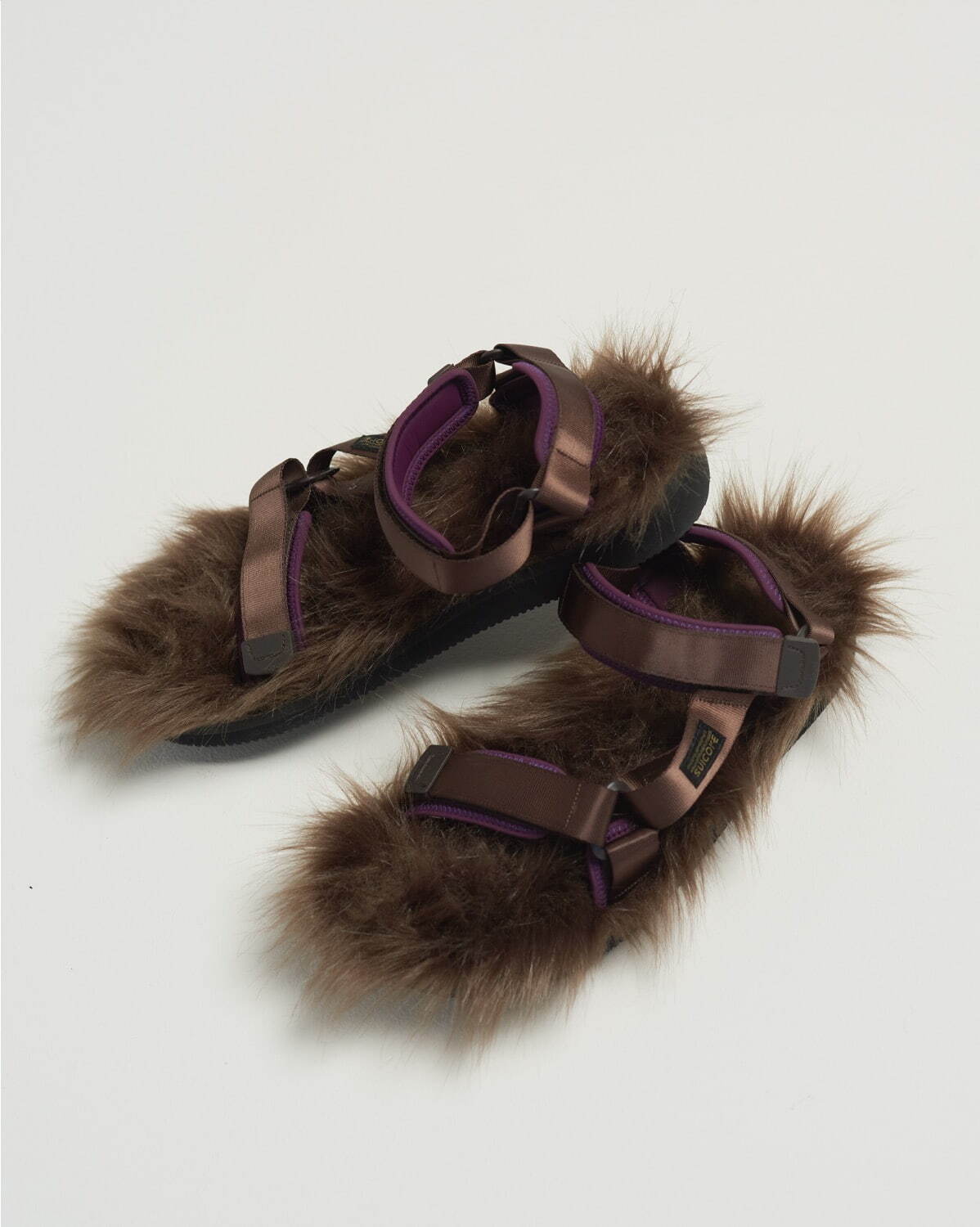 ベッドフォードとスイコックが、初のコラボレーション。スイコックを代表するモデル「ディープキャブ(DEPA-CAB)」をベースに、毛足の長いファーをインソール部分に敷き詰めたサンダルを用意する。
