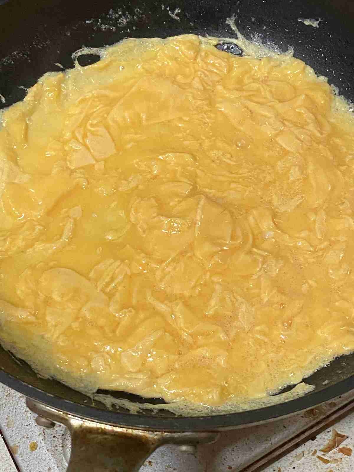 コンソメキューブ溶いた汁の残りを温めた