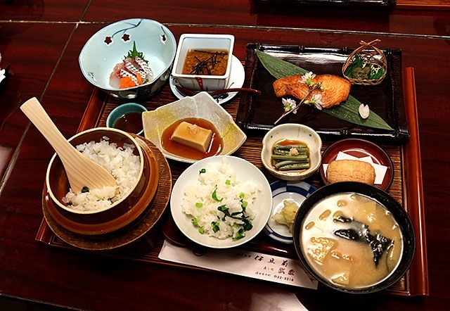 メニュー名は「ドラマ『おしん』風酒田郷土料理御膳」で、1食2500円。サクラマスの焼き物やマダイの刺し身、孟宗汁などと一緒に釜に入った大根飯が並ぶ。考案した中川栄太郎取締役(49)によると、大根飯はドラマの通りに作ると思いのほか甘みが強く出たという。「令和のコメがおいし過ぎるのかもしれないが、雰囲気が出ない」と、あえて古米を使ったのがポイントだ。