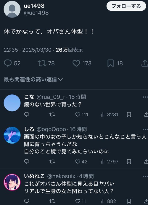 SNSとはいえ人に面と向かってデブとか言うのおかしいだろ