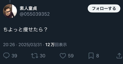 そもそも平然と「太い」「デブ」ってコメントできるのが障碍者だわ