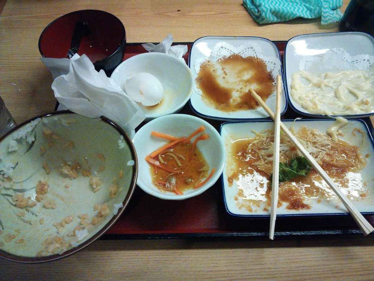 米粒周りに飛ばしながらかっ込んでごっつぁん!(箸カラァン!)って