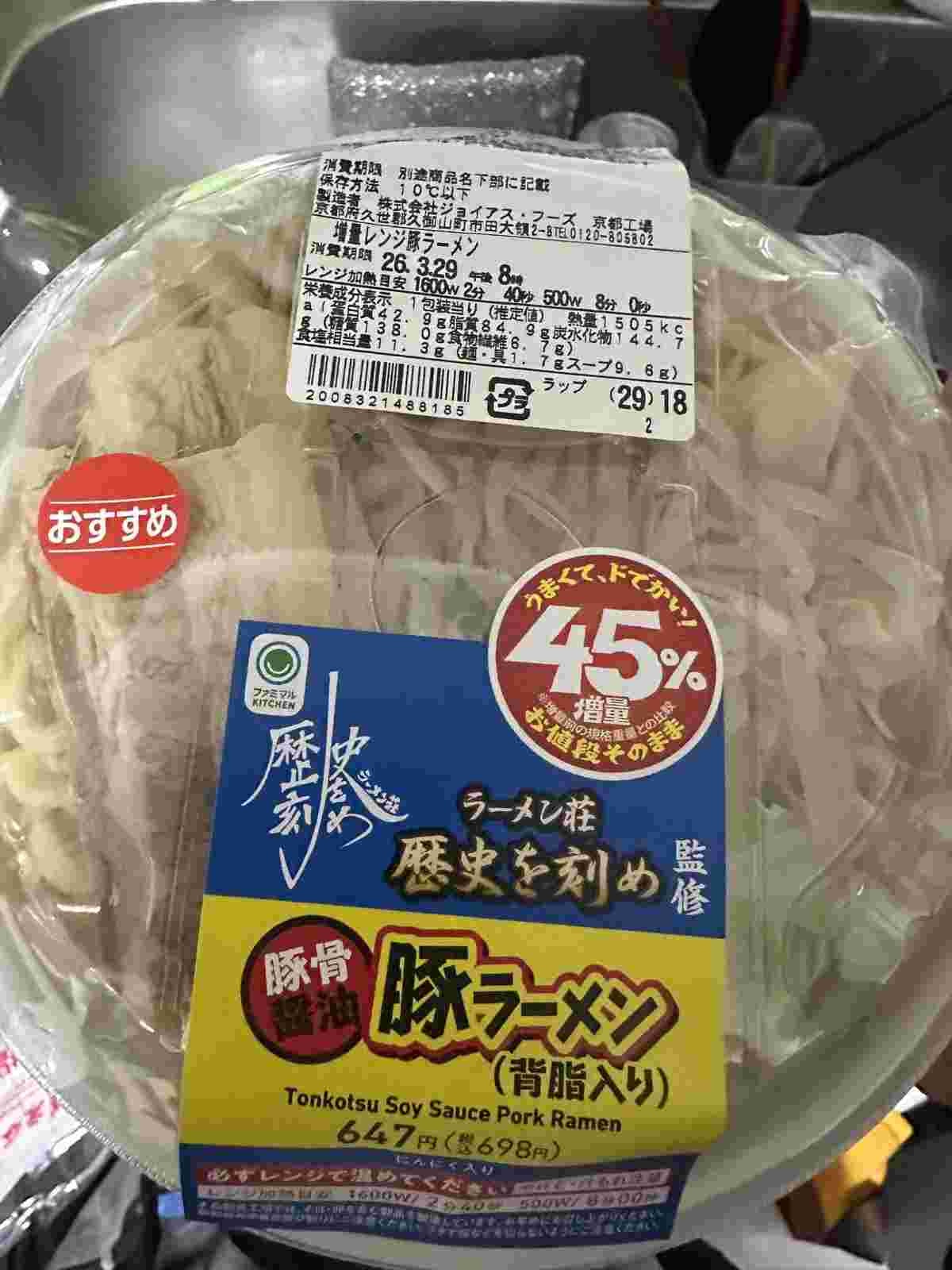 【画像】ファミマ「豚ラーメン45%増量(698円)」、色々と限界突破