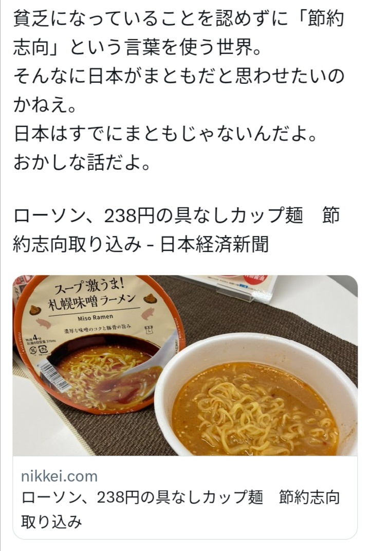 本当に節約志向ならコンビニなんて使わないし、カップ麺なんて論外やろ