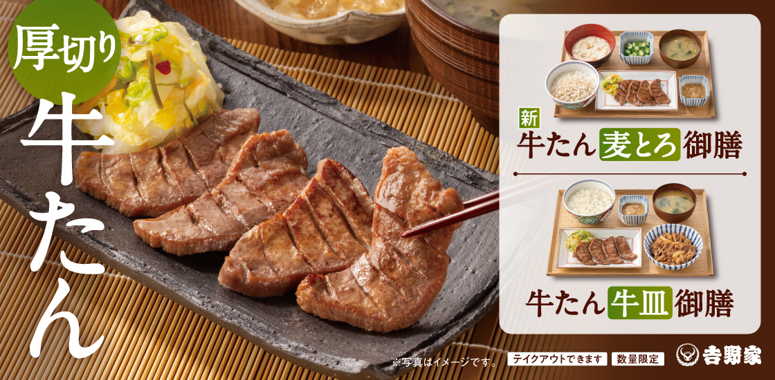吉野家、厚切り牛たんの「麦とろ御膳」が発売! 麦飯の増量・おかわりも自由