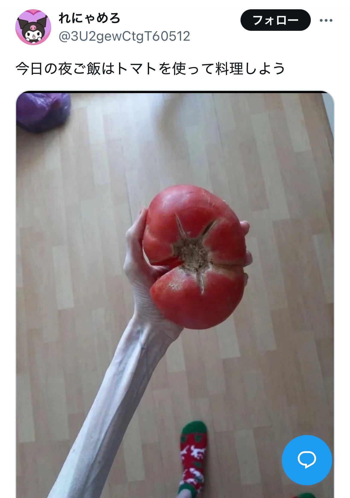 【画像】女の子「このトマト晩御飯にします」6万いいな