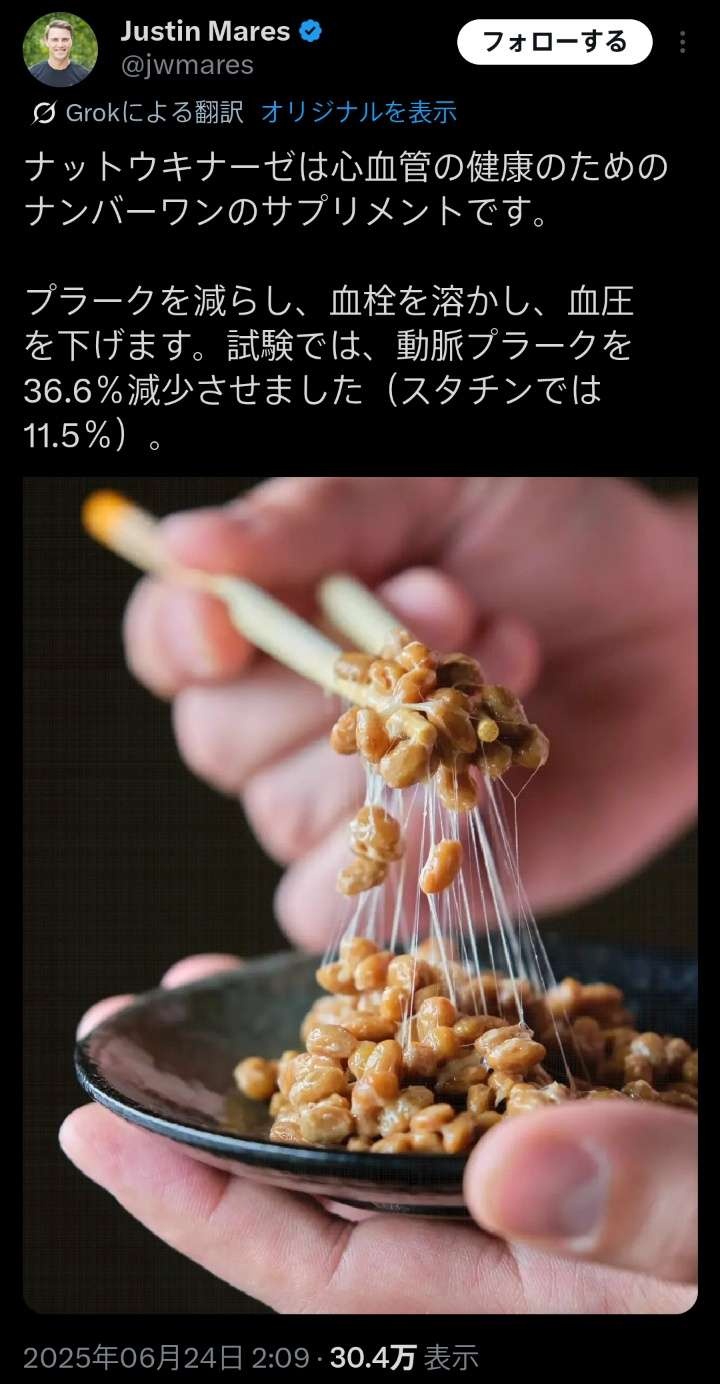 納豆大好きで食いまくってたのに心筋梗塞になってしまったわ