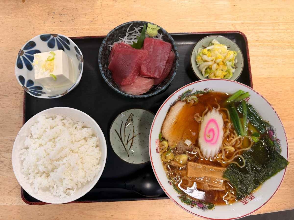銚子に住んでた頃、カツオの刺し身とラーメン定食があったわ。