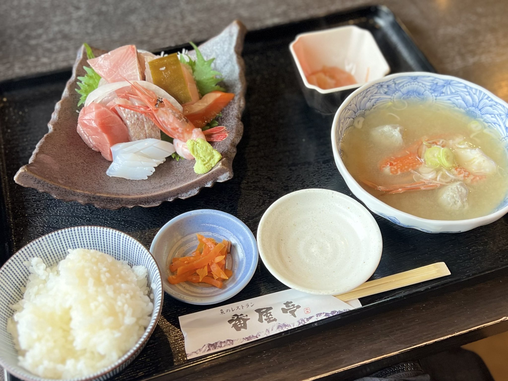 刺し身は物足りないが蟹汁は美味そう