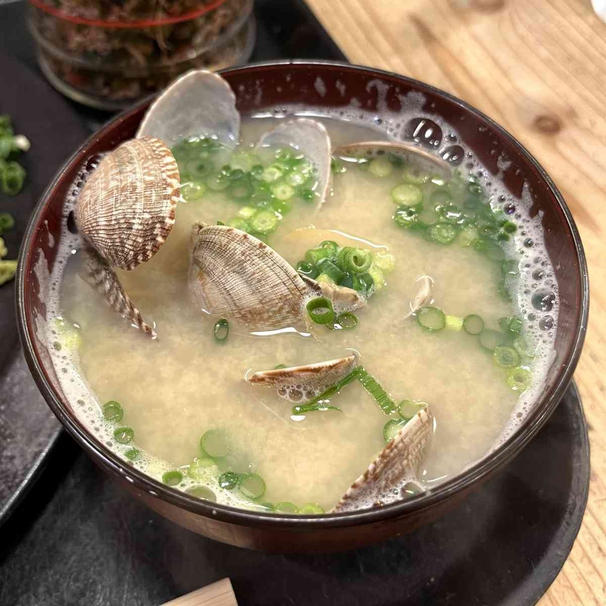 味噌汁具沢山なのと右上のこれは何や?錦松梅的なふりかけ?