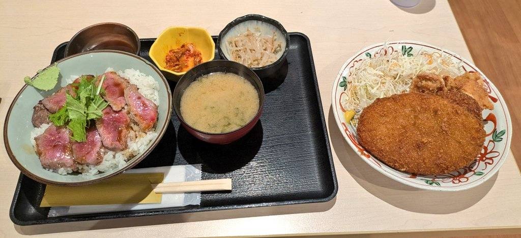 【画像】貴殿らはこの「肉丼と唐揚げ、メンチカツ、大仏コロッケ定食1200円税込」にいくら払える?