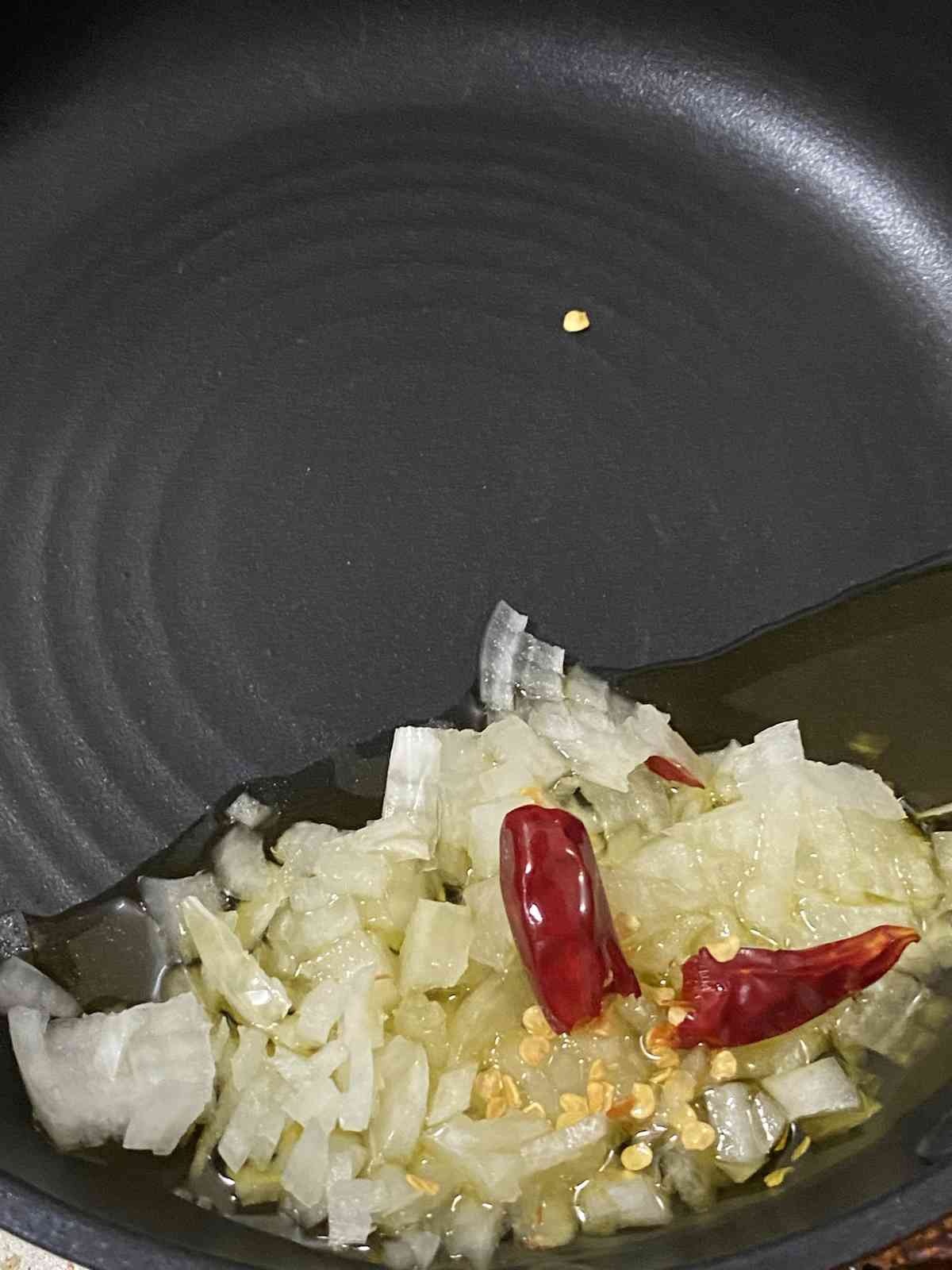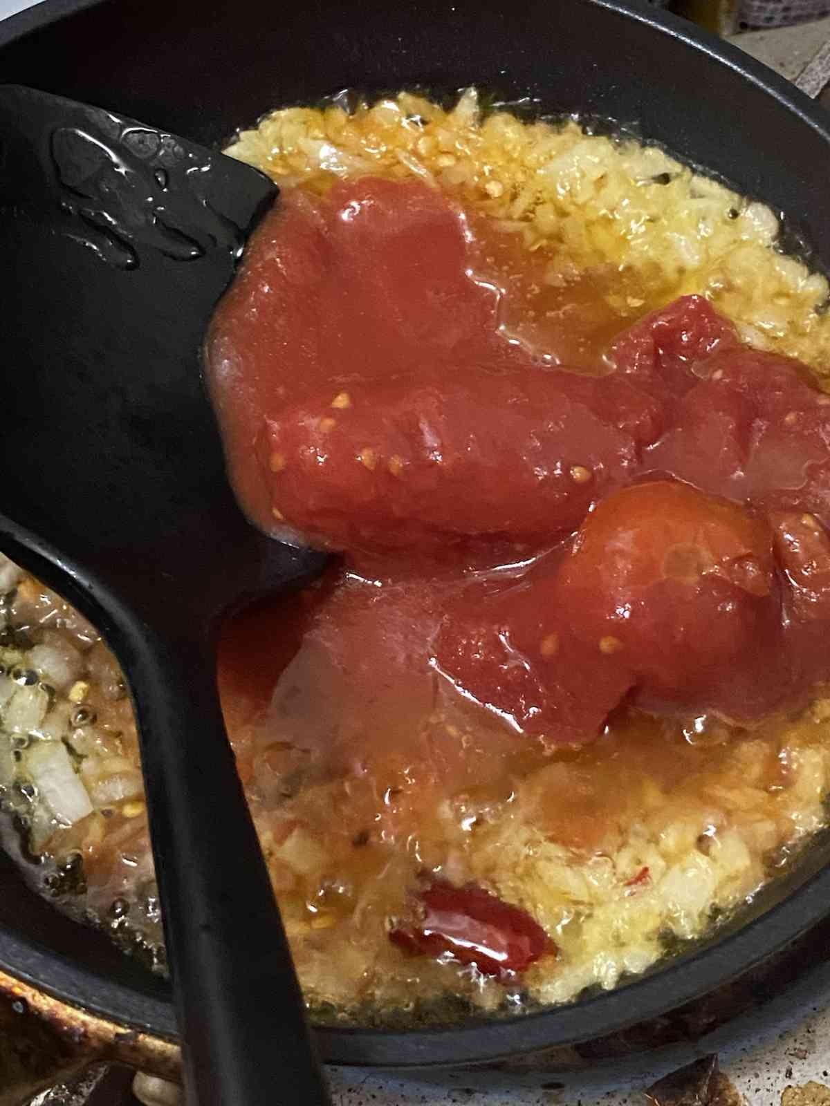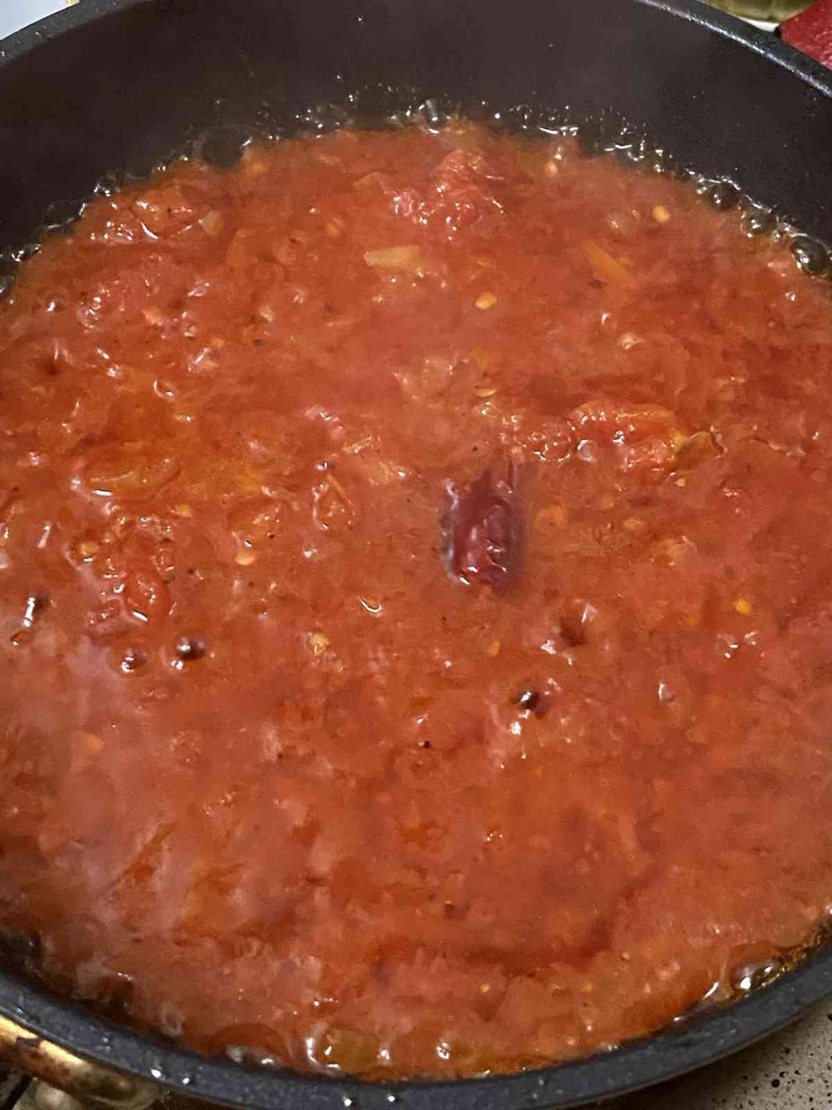 トマト1/2缶に、唐辛子1個種ごと入れたけど