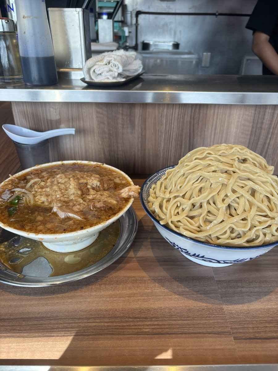 らーめん菊でつけ麺とラーメンを食べました。ボリューミー最高。