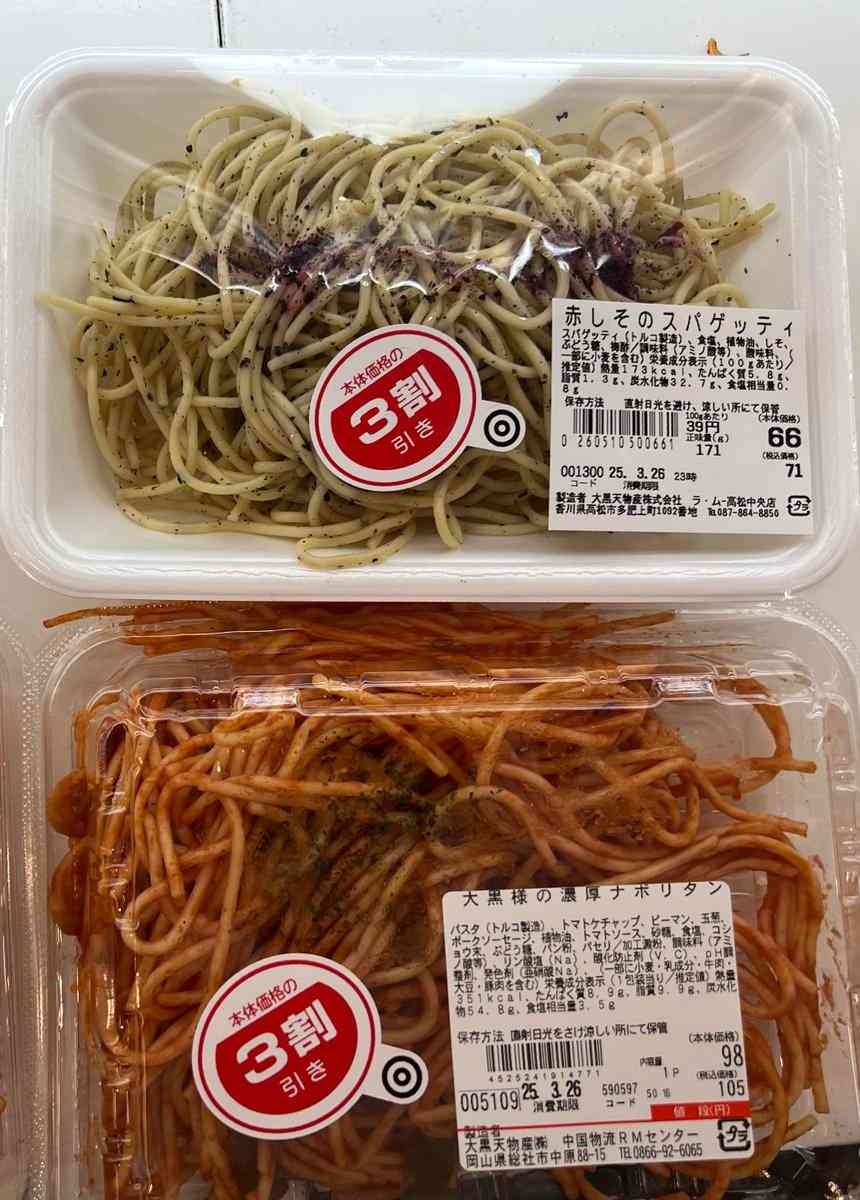 激安大衆スーパー ラ・ムーの新作「赤しそのスパゲッティ」66円-30%+税