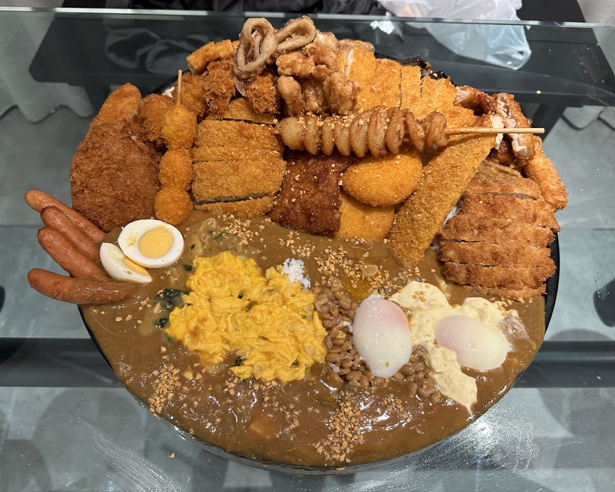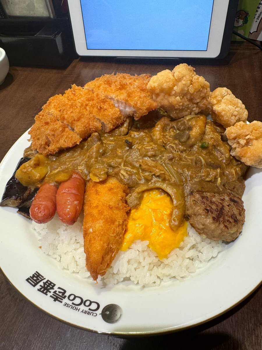 酔った勢いでCoCo壱カレー夢の全乗せしてしまった…(別皿もある)
