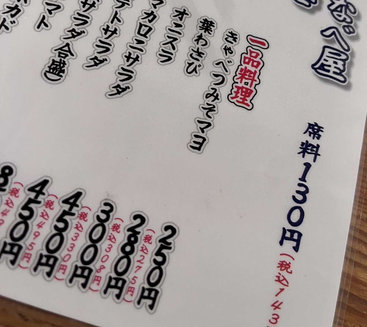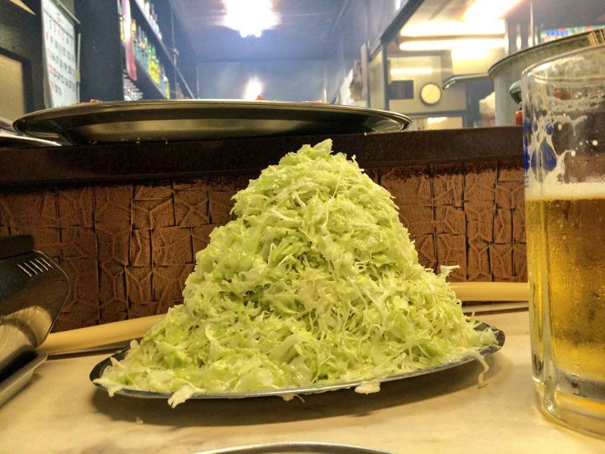『キャベツ』は現在では大盛りは無くなり、中盛り300円、小盛り150円です。