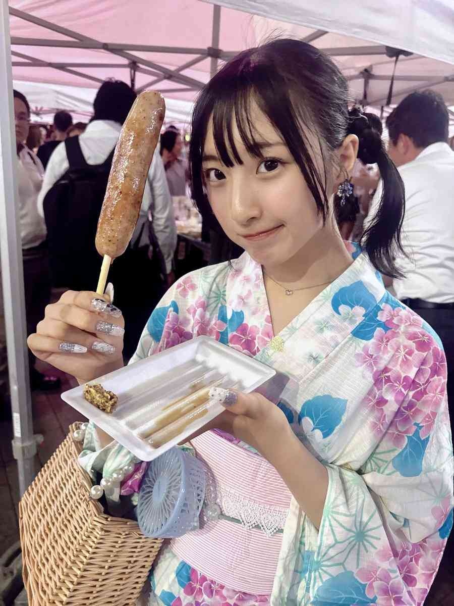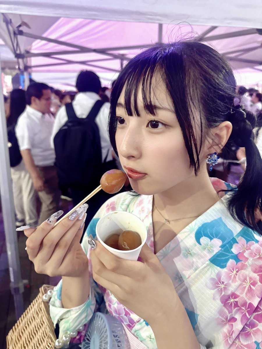 【画像あり】浴衣姿の女子高生がお祭りでチョコバナナをペロペロ、玉こんにゃくをチロチロ、フランクフルトをパクッ