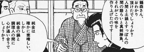 鍋好きの運輸会社社長の自慢は純金の鍋。対抗する士郎の土鍋はなんの
