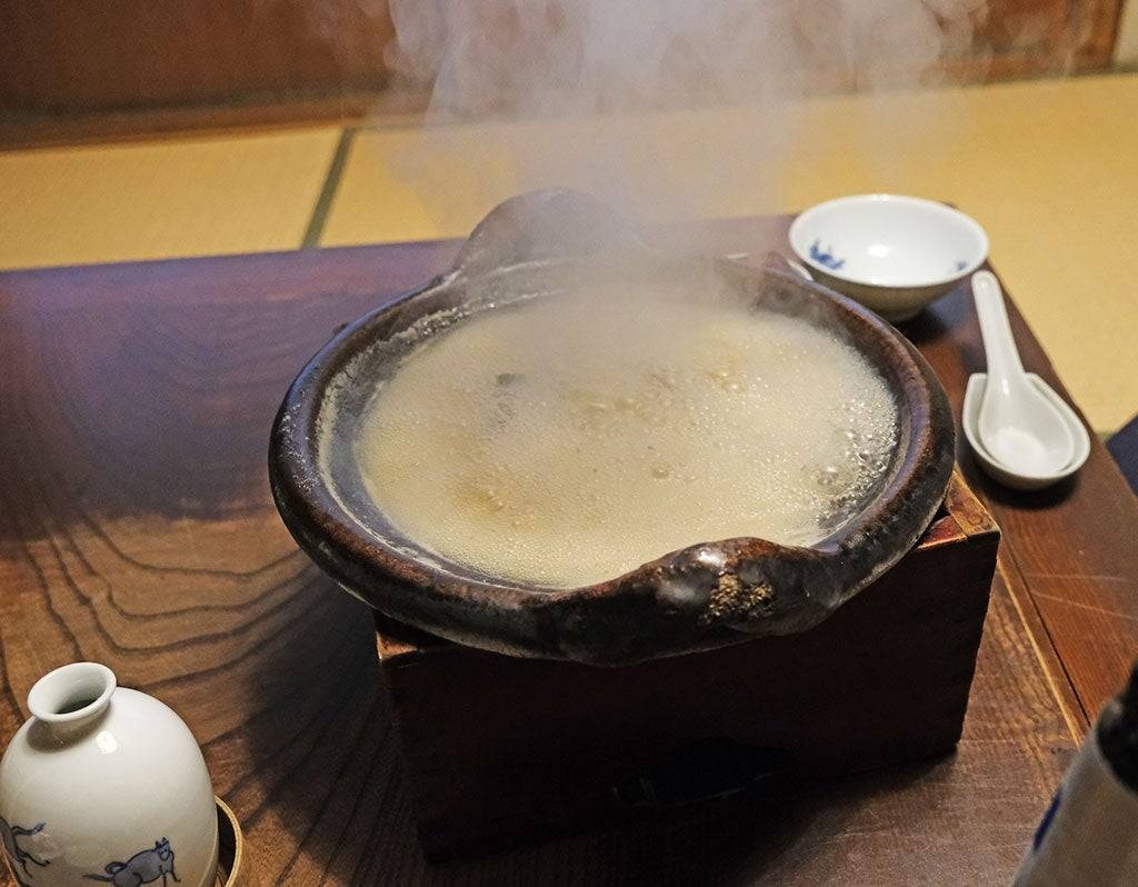 変哲もない古い鍋。しかしすっぽん料理屋で鍛えぬかれ、今なお現役の鍋は、