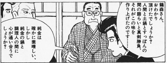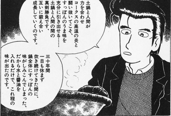 【美味しんぼ】山岡「30年間炊き続けてきた鍋にすっぽんの味が染みついてるから、水と醤油を入れるだけでこれ程のまる雑炊ができる。」