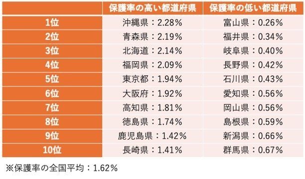 生活保護率の高い都道府県