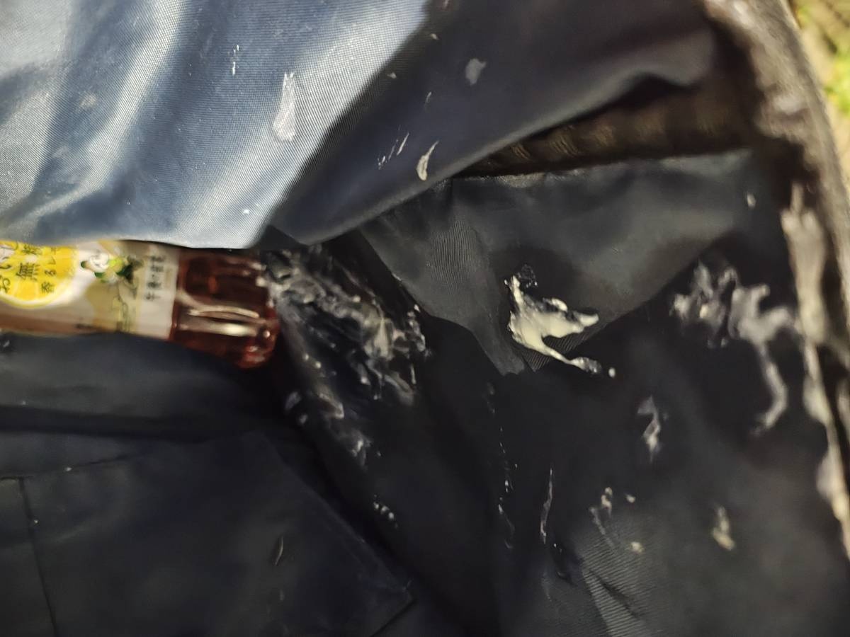 4つ折りのヨールグルトの1つポケットに入れて座ったら白乳液が