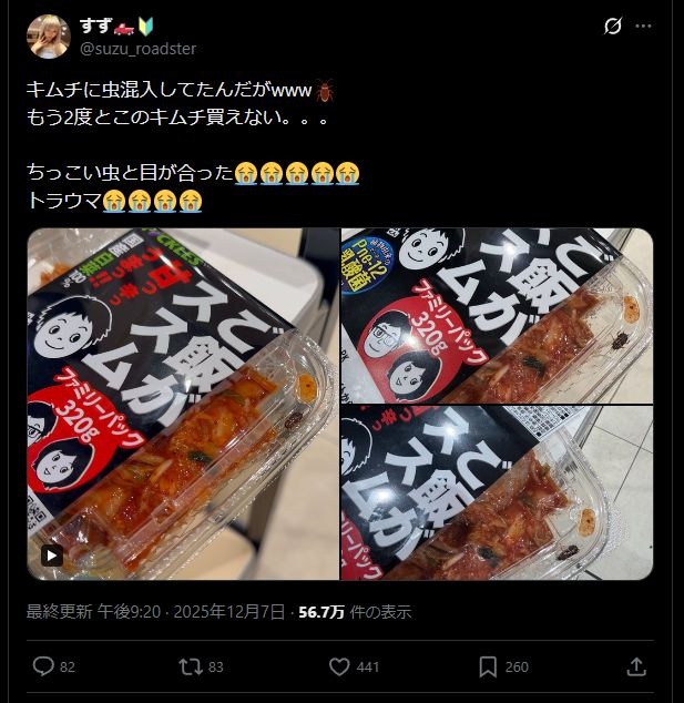 材料に虫混入なんて