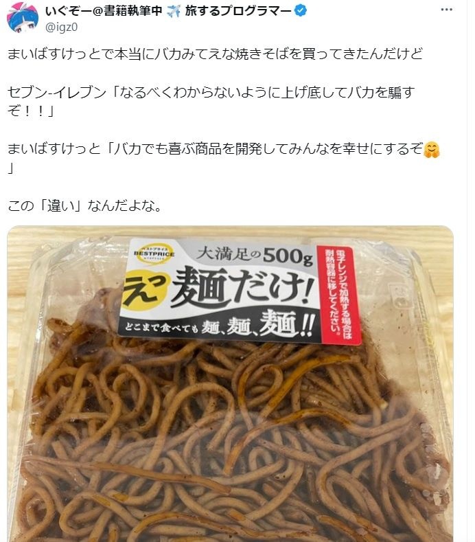 ん?自分でチルドの焼きそば買って作れば半額で量も倍だぞ?