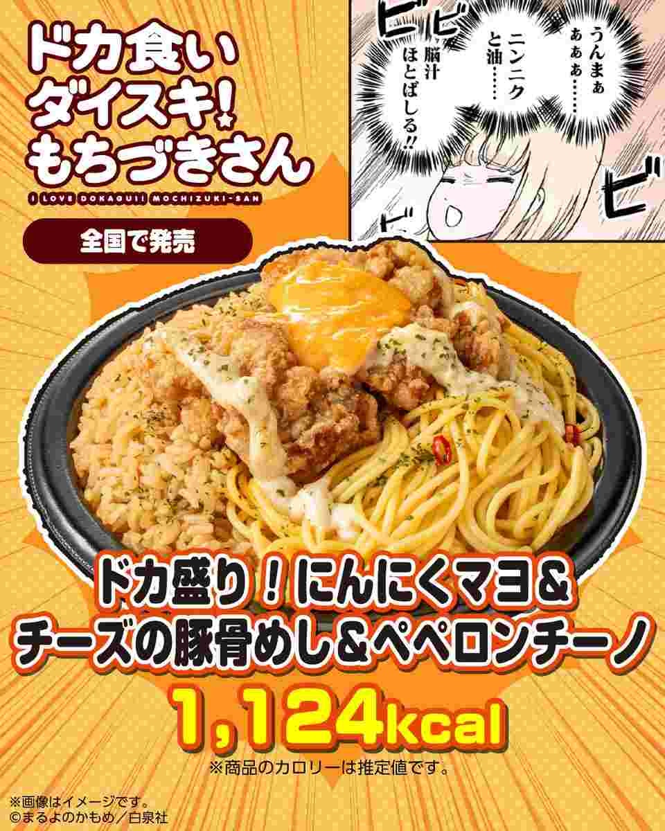 連載されているグルメ漫画『ドカ食いダイスキ! もちづきさん』と、『セブン』のコラボ商品の1つ。