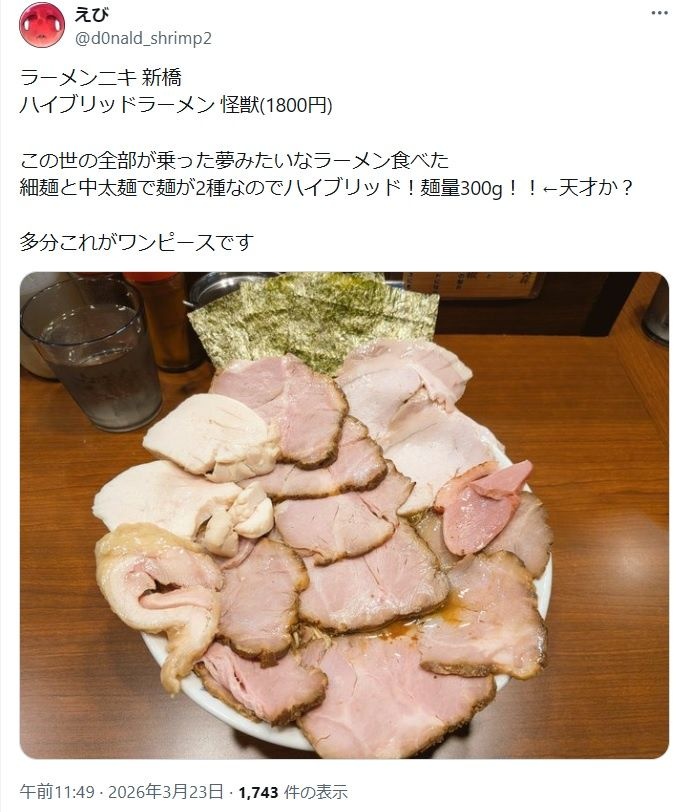 新橋で発見! 肉しか見えないモンスターラーメン『怪獣』が凄まじいハイブリッドラーメン 怪獣(1800円)