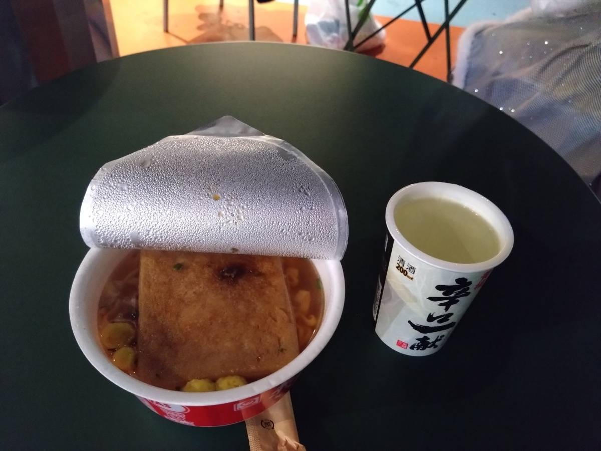 この状況下でよく酒を飲みつつカップうどんを食えるなw