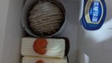 おつまみはセブンで買った餃子とサーモンの塩昆布和えだよ~サーモンおいしい